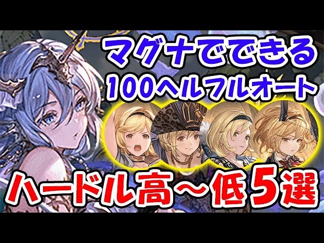 【グラブル】本番環境 光古戦場 100HELL マグナでできるフルオート ハードル高~低 5選(シュバマグ)「グランブルーファンタジー」